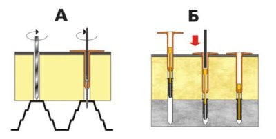 - гвоздь вкручивается посредством резьбы, покрывающей его верхнюю часть.