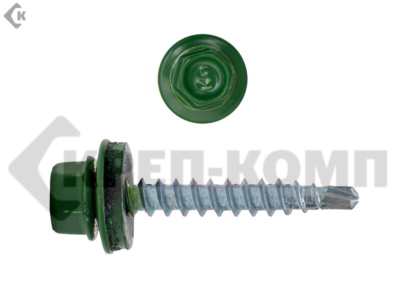 Саморез кровельный 4,8х35 RAL6002, зелёный K КРЕП-КОМП Средняя фасовка (250шт)