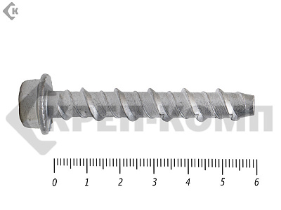 Саморез (анкер) по бетону, используется для ответственных креплений в бетоне без трещин и в растянутой зоне с трещинами. Используется для высоких нагpузок. Нагрузка на вырыв на 20-25% выше, чем у стандартных клиновых анкеров. Материал -углеродистая сталь высокой прочности, специальной закалки. Специальное антикоррозийное покрытие RUSERT.