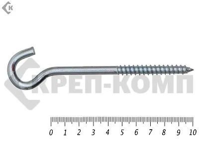 Шуруп-полукольцо – это прочный металлический крепеж с крюкообразным наконечником. Изделие используется для подвешивания декоративных элементов, навесного оборудования, вспомогательных приспособлений. С его помощью удерживаются фиксирующие ленты и канаты.