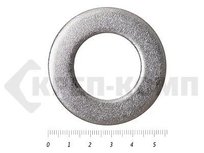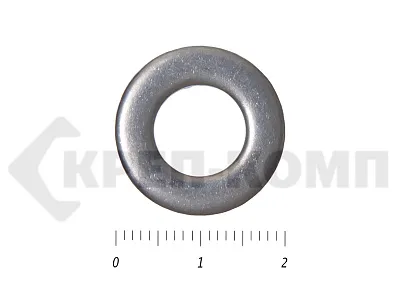 Плоская шайба DIN 125, выполнена из нержавеющей стали и может использоваться во влажной среде. Служит она для фиксации резьбовых соединений. Представляет собой плоский диск с гладким цилиндрическим отверстием в центре для установки винта, болта или другого метрического элемента. За счет своей формы увеличивает площадь прижатия головки винта или гайки к поверхности заготовки. Используется при необходимости исключить произвольное раскручивание винта, к примеру, под воздействием вибрационных нагрузок