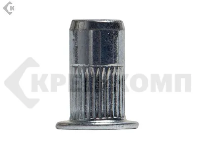 Заклепки резьбовые цилиндрические с насечкой (рифленые). Изготовлены из высокопрочной стали. Применяются в основном при необходимости выполнения прочной резьбы в листовом металле, когда нарезание резьбы невозможно. Резьбовые заклепки имеют внутреннюю резьбу для крепления винтов, болтов, шпилек. Заклепки цилиндрической формы применяются для установки в круглое отверстие. Насечка наносится с целью предотвратить прокручивание крепежного узла.