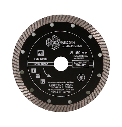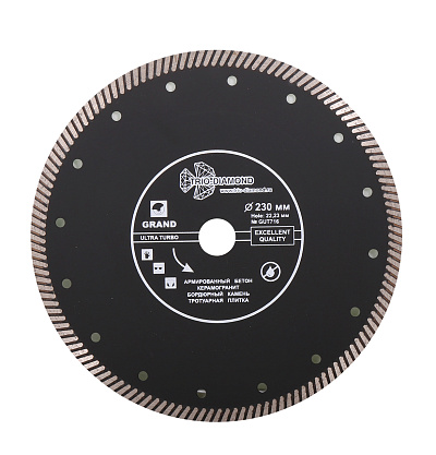 Алмазные диски предназначены для сухой и мокрой обработки прочных строительных и отделочных материалов: бетона, камня, кирпича, мрамора, гранита, черепицы, гипсовых плит, асбеста, шифера, керамики. Диски с алмазным напылением эффективнее абразивного инструмента за счет постоянного диаметра, обеспечивающего стабильную глубину резания, и особой конструкции, позволяющей выполнять работу быстрее и эффективнее. Утолщенная ступица и усиленная основа предотвращают изгибание и деформирование инструмента во время обработки твердых материалов. Промежутки между сегментами и перфорация обеспечивают удаление пыли и шлама из зоны резания.